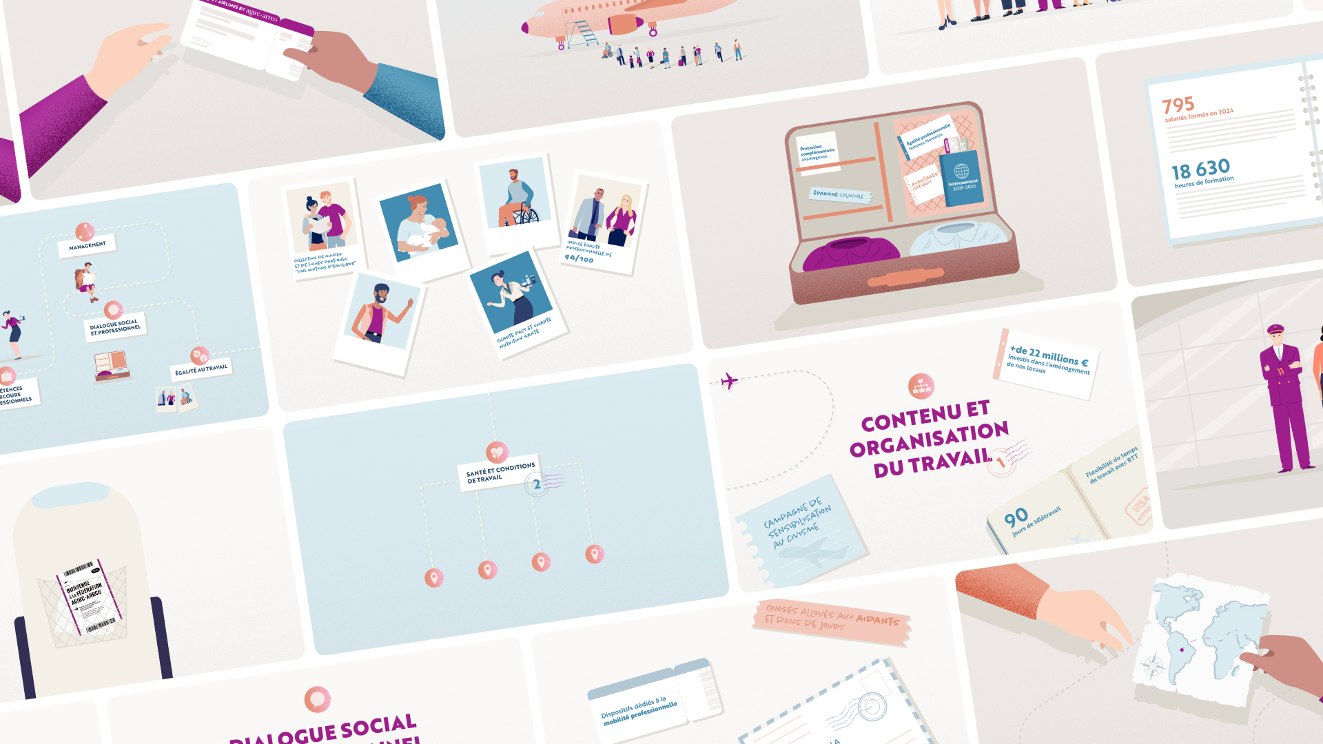 En collaboration avec l’agence Entrecom, j’ai réalisé la vidéo de présentation des conditions de travail de l’Agirc Arrco. A destination des employés, elle a pour but de présenter des avantages et règles de l’entreprise de manière ludique et professionnelle.