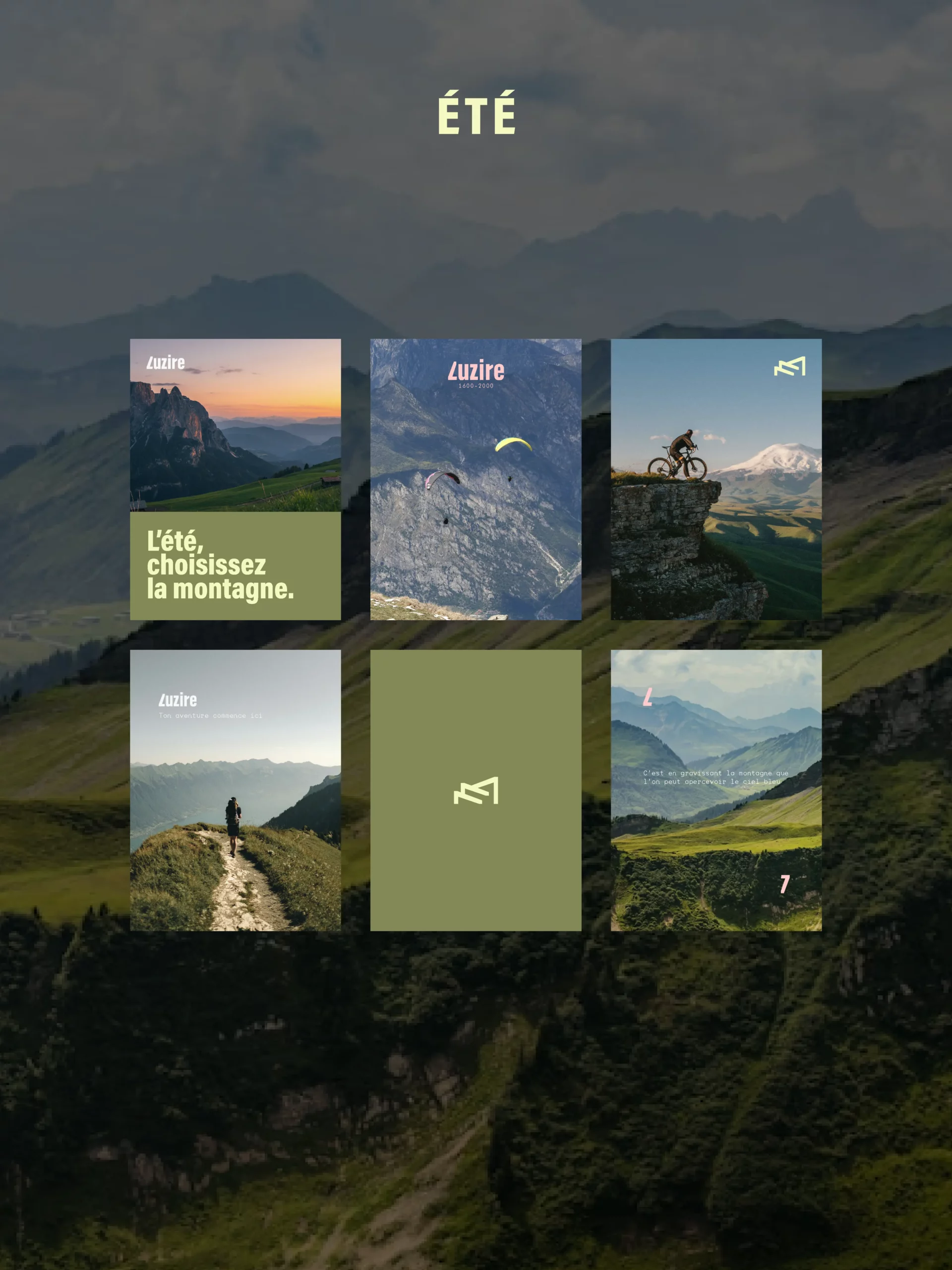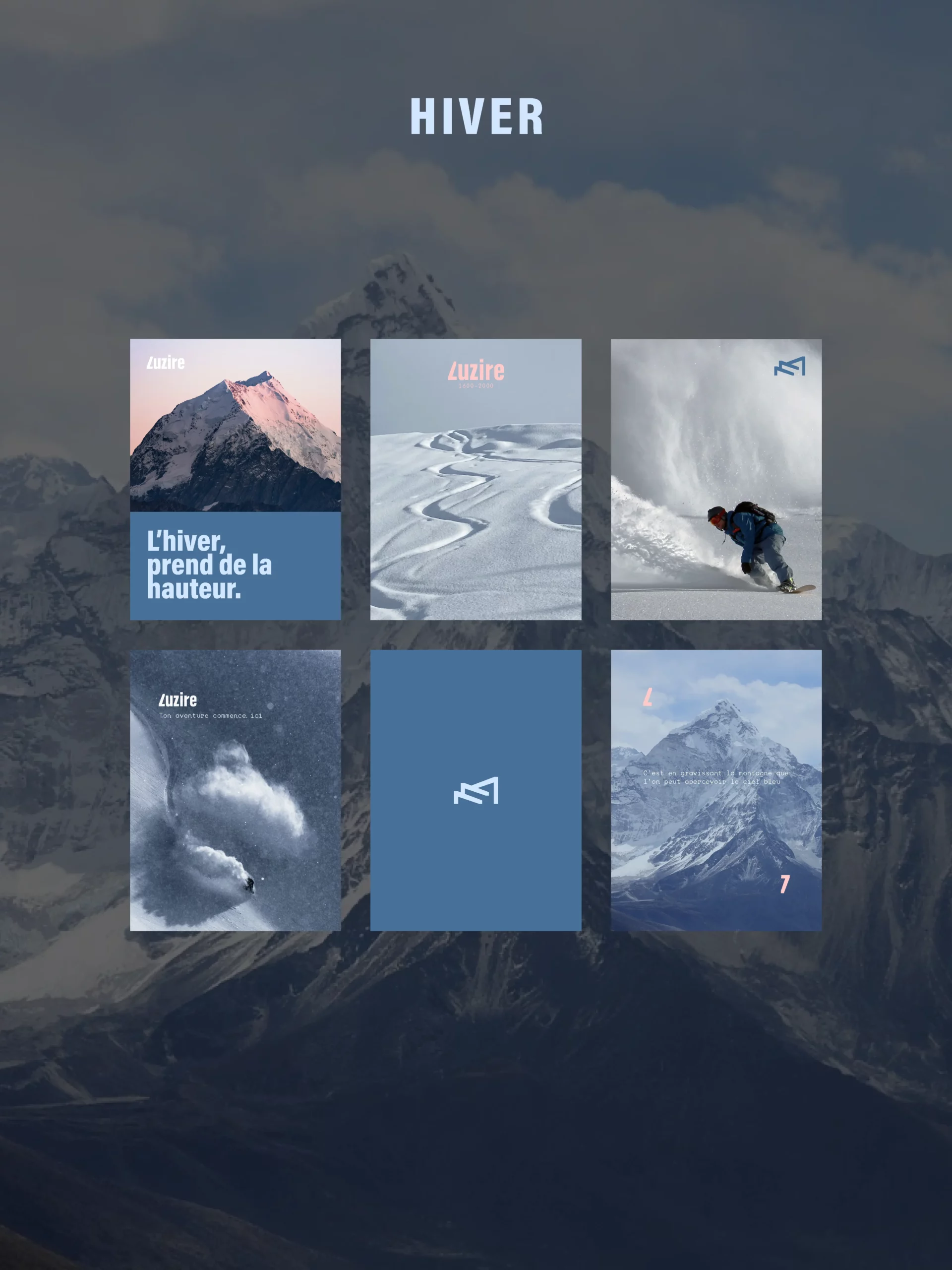 Pour ce brief fictif, j’ai réalisé l’identité visuelle du domaine de montagne « Luzire ». Un logo typographique, un symbole reconnaissable ainsi que des couleurs pour la communication l’hiver comme l’été, ont été choisies pour la création de cette direction artistique.